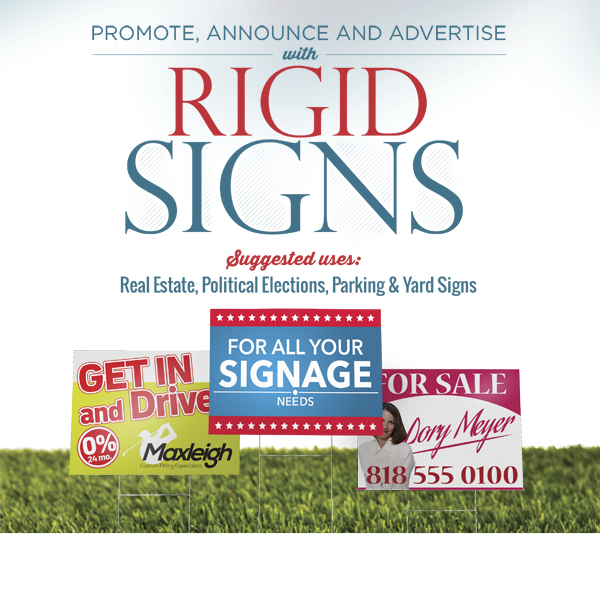 Corrugated Signs are typically used for yard, parking, real estate, and election signs. They are waterproof. H-stakes available.